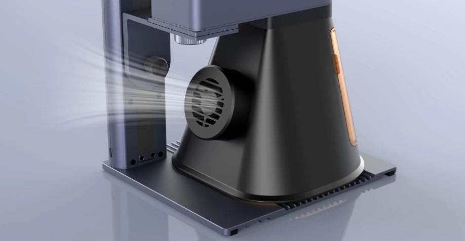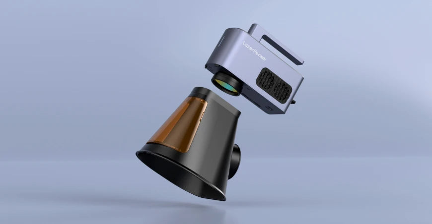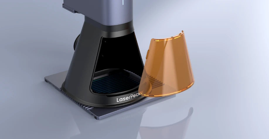 Das konische Gehäuse hilft, den Großteil des Laserlichts abzuschirmen und erhöht die Sicherheit beim Gravieren oder Schneiden. Dennoch empfehlen wir zur zusätzlichen Sicherheit das Tragen einer Schutzbrille.