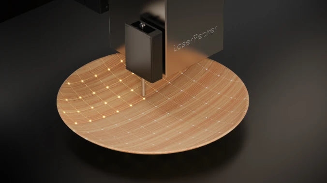 - Das Lasermodul fokussieren und den Materialtyp für empfohlene Einstellungen auswählen