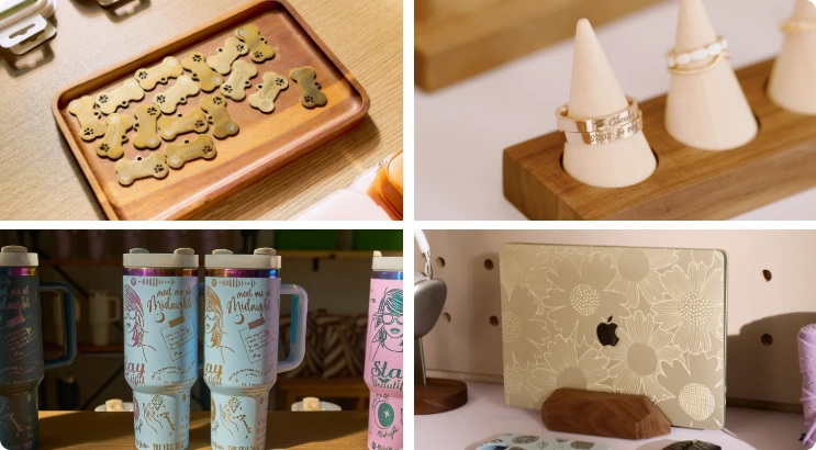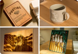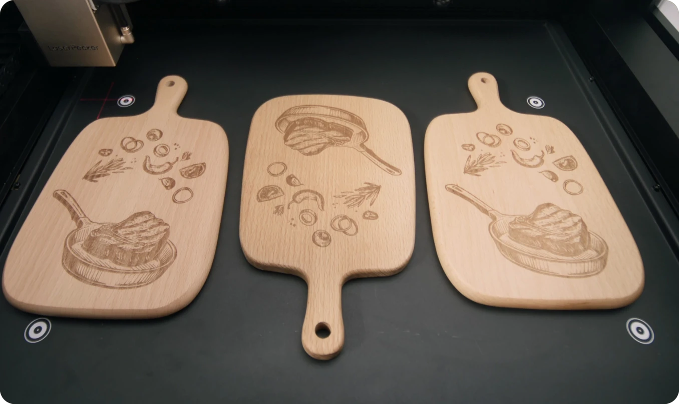 Up to 19mm Cherry wood Up to 20mm Acrylic Up to 0.5mm Stainless steel |