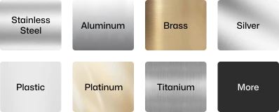 stainless stell, aluminum, brass, silver, plastic, platinum, titanium