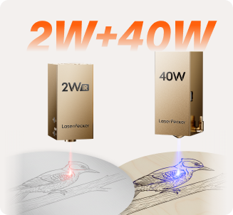 · 40W Diode Laser: 152.2 mm × 77.4 mm × 72 mm | 5.99″ × 3.05″ × 2.83″