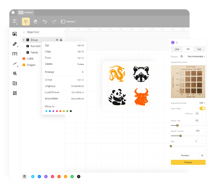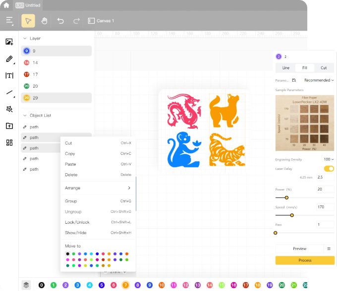 Organisieren Sie Ebenen und Formen mit klarer visueller Hierarchie. Selbst komplexe Projekte bleiben übersichtlich, strukturiert und leicht anpassbar.