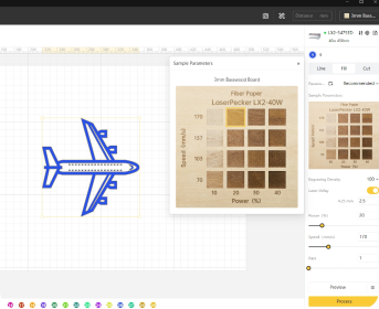 - Integrierte Materialdatenbank – Finden Sie sofort empfohlene Einstellungen.